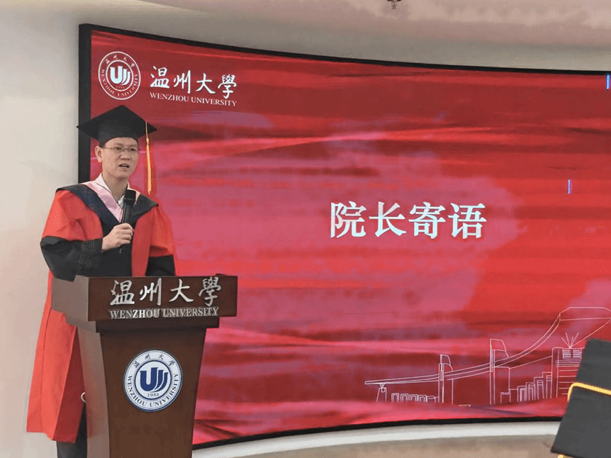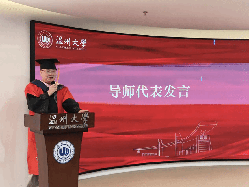 典礼在热烈而温馨的氛围中拉开序幕。钟卫东教授作为导师代表发言,他结合自身经验,深情寄语毕业生要不忘初心、戒骄戒躁,勇担新时代赋予的使命责任,在未来的征程中笃行不怠、砥砺前行。