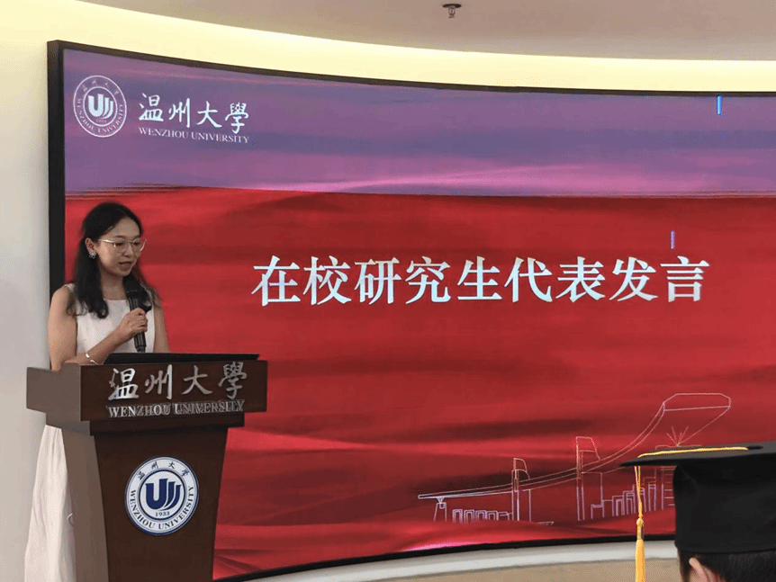 随后,研一学生梁海丽作为在校研究生代表发言。她表示,将以学长学姐为榜样,珍惜在校时光,脚踏实地打牢专业基础,在未来的学习与科研中不断进步,力争在未来的发展中也绽放光彩。