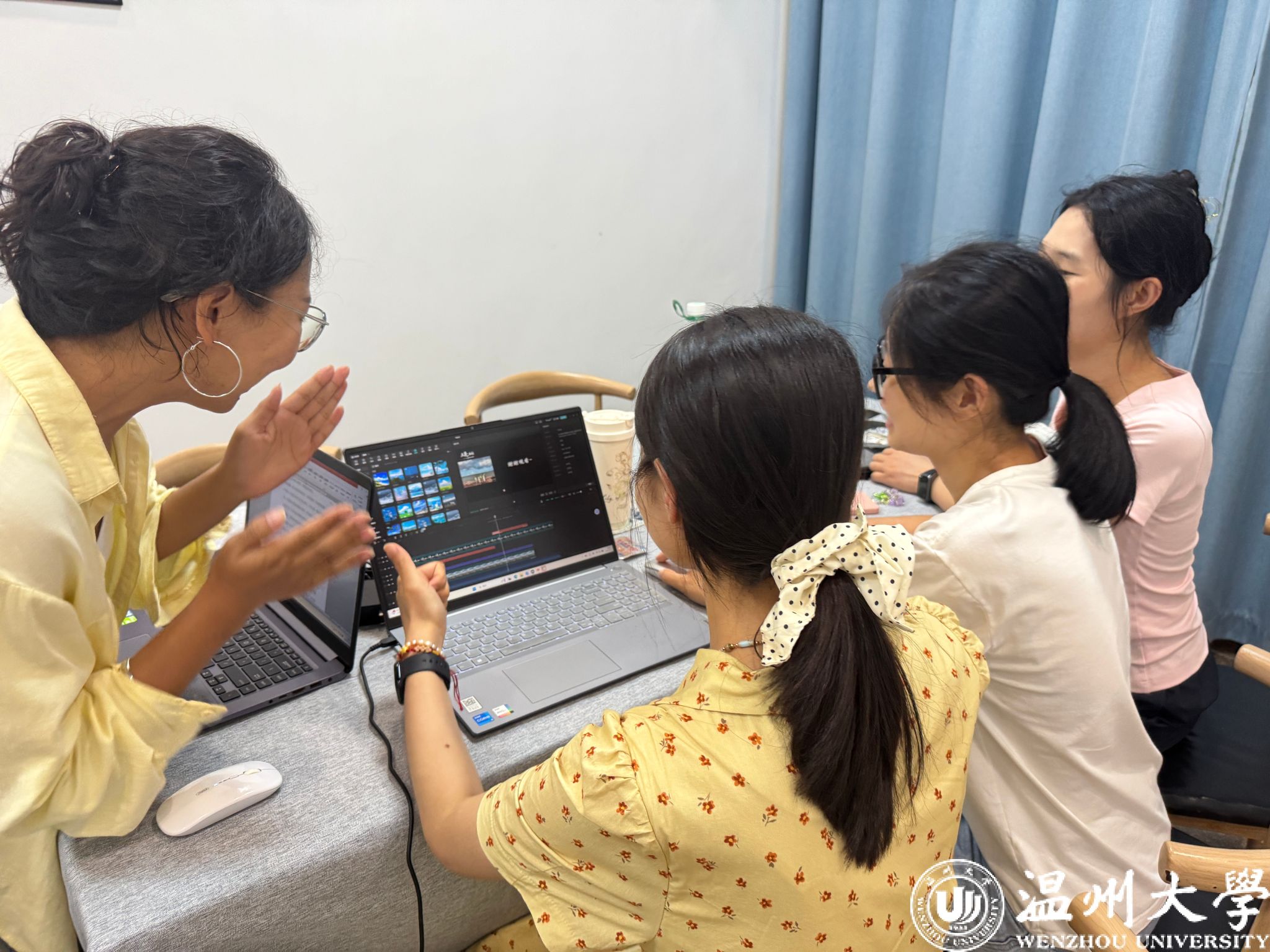 下午,队员们返回驻地民宿,迅速投入到宣传视频的创作中。大家围绕上午调研的收获,进一步完善视频脚本,对筛选出的实地素材进行精细剪辑,在讨论中不断优化画面呈现方式。指导老师俞快也参与其中,引导队员们将调研中捕捉到的人文细节融入视频,让自然美景与文化底蕴相互映衬,让影像更具故事性与感染力。现场协作氛围浓厚,队员们各司其职又相互配合,视频的轮廓愈发清晰。
