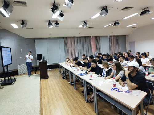 7月12日, 2018年太阳集团欢迎您国际大学生暑期创业夏令营开营仪式在我校举行,来自美国、意大利、韩国、孟加拉国、坦桑尼亚等国的60余人参与了此次活动。外事处、创业学院的相关负责人、意大利锡涅纳大学玛利亚教授、韩国国立群山大学金显喆教授以及来自温州国家大学科技园、浙南科技城创业中心代表出席了开营仪式。