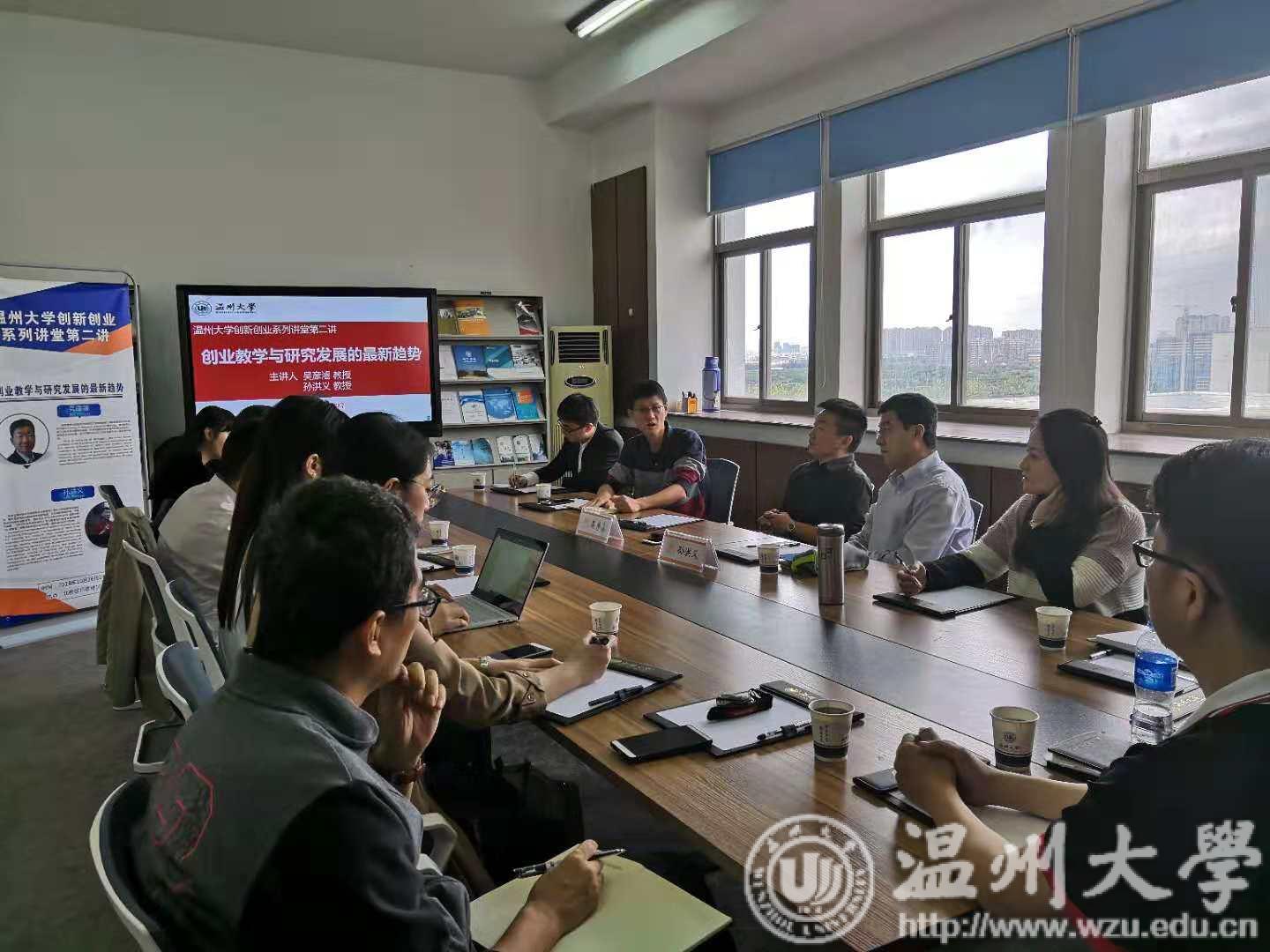 2018年10月26日下午两点,在北校行政楼504教室,我院举行了创业教学与研究发展的最新趋势座谈会,此次座谈会特别邀请了来自台湾师范大学的特聘教授吴彦濬博士,香港城市大学系统工程和工程管理学系的副教授孙洪义来我院交流经验。此外,我院副院长施永川和胡文超,曾尔雷教授,徐暄淯博士等相关教师也参与了此次座谈。