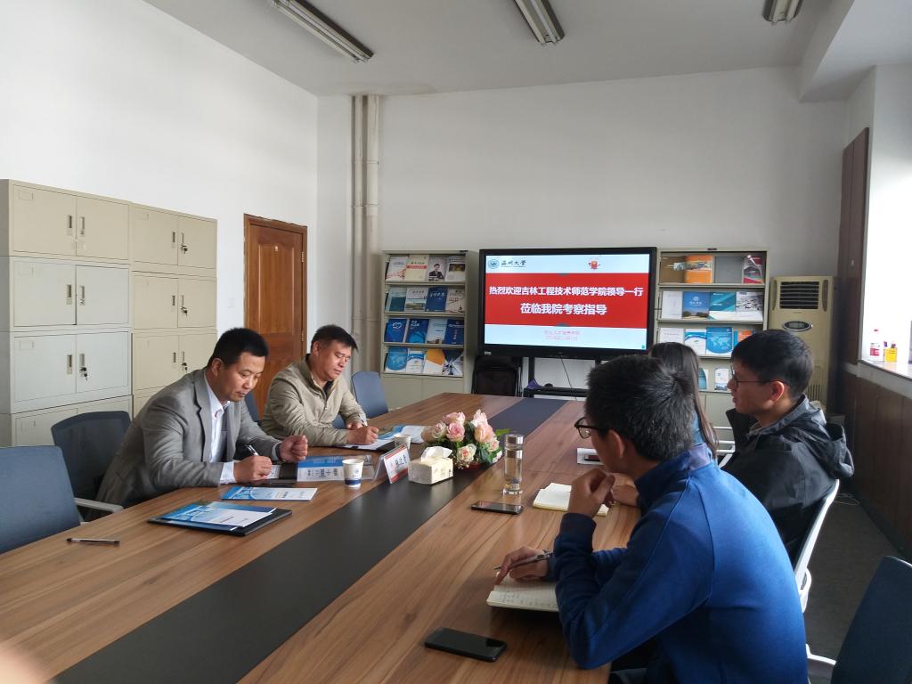 11月1号上午,吉林工程技术师范学院创新就业处处长董鹏中教授,工商管理学院院长张沈青教授来访我院考察交流,我院副院长施永川对两位教授的到来表示热烈的欢迎,双方就大学生创新创业教育教学与创业实践方面的经验和成功做法展开了深入探讨。