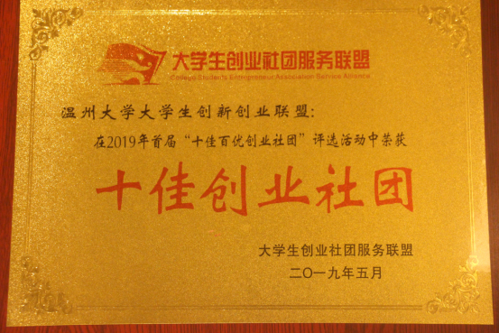 近日,首届中国大学生创业社团发展高峰论坛暨2019年大学生创业社团服务联盟年会颁奖典礼在共青城市召开,我校创盟在首届大学生创业社团“十佳百优”评选中荣获“十佳创业社团”、“最佳人气奖”两个称号,并在现场路演决赛中争得冠军奖杯。