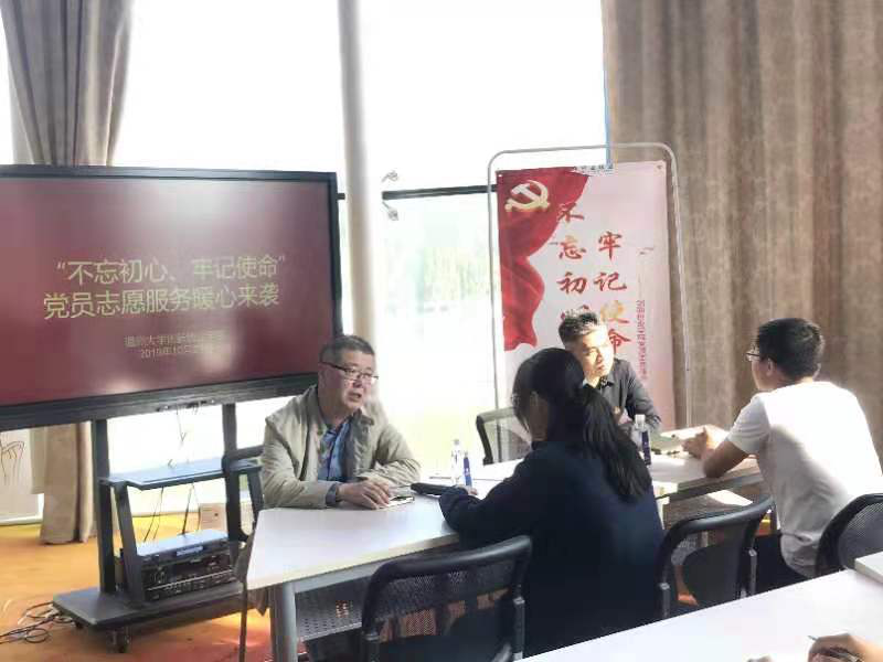 2019年10月23日,suncitygroup太阳新城直属党支部在太阳集团欢迎您众创空间,组织支部党员开展“不忘初心、牢记使命”主题教育党员志愿服务活动,帮助同学门解疑答惑创业方面的困恼与问题。