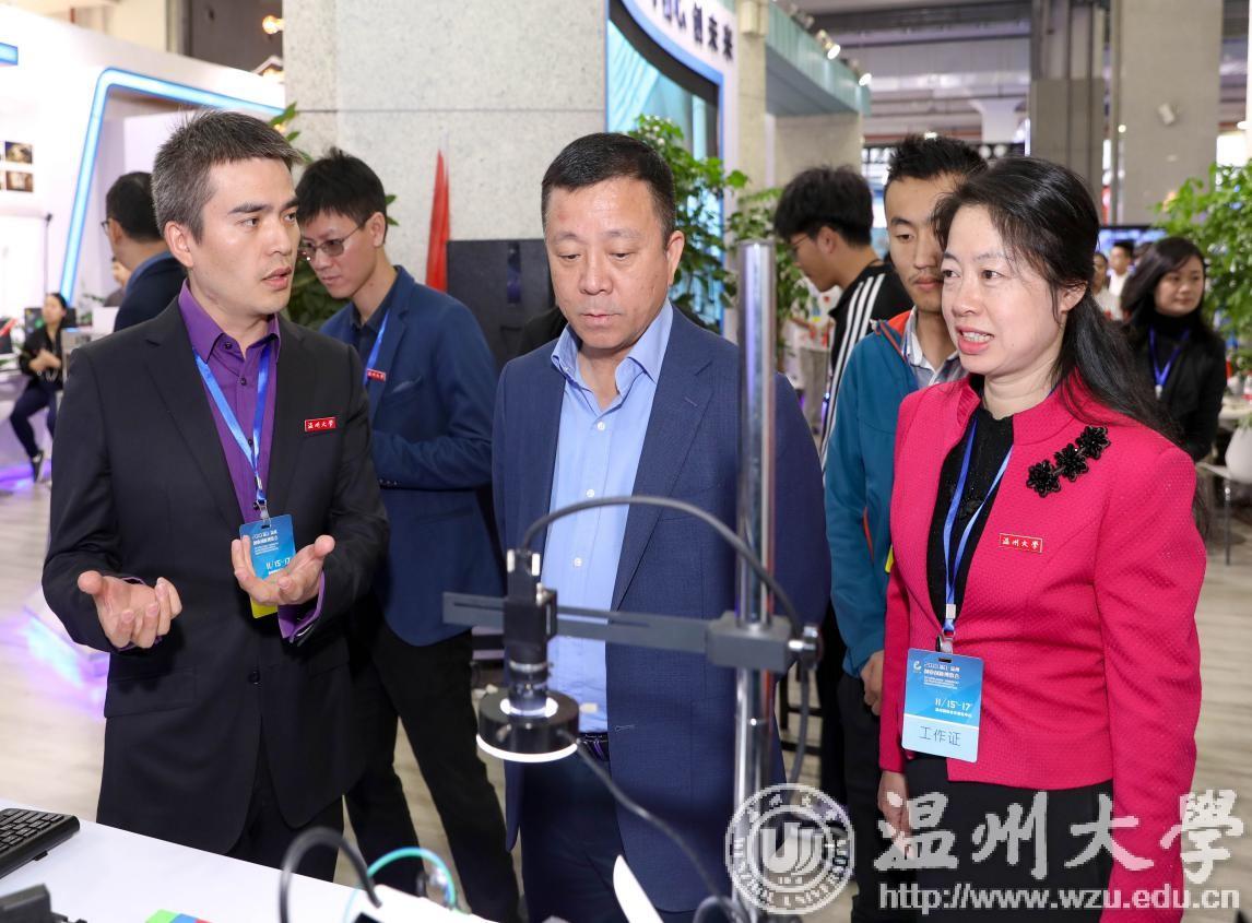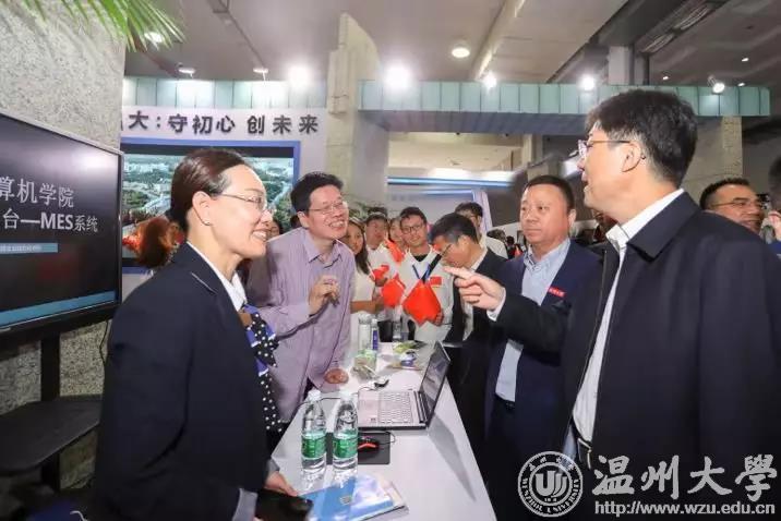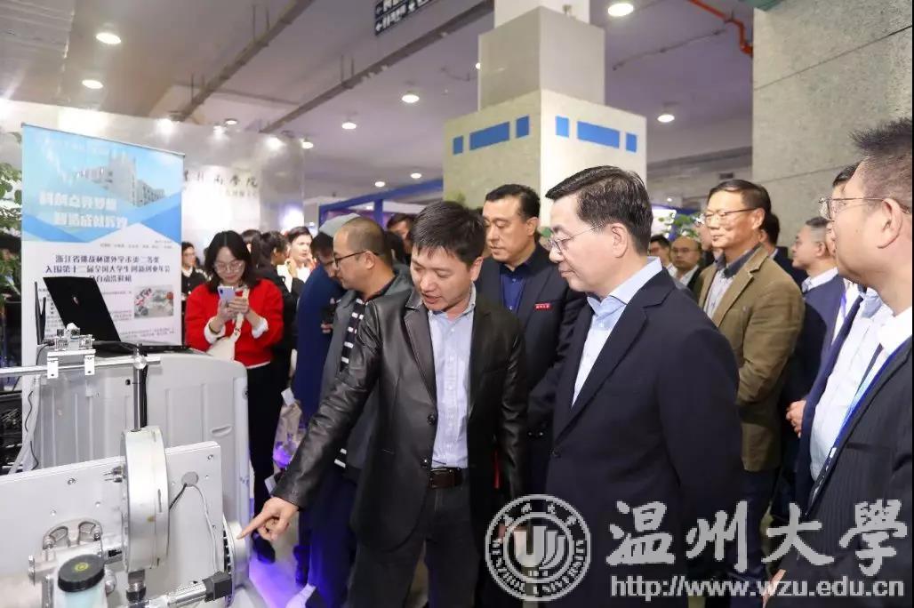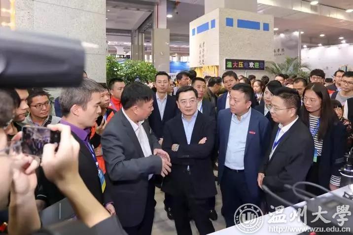 展会期间,浙江省委常委、温州市委书记陈伟俊,温州市委副书记、市长姚高员先后莅临温大展馆,点赞我校师生的创新创业项目。