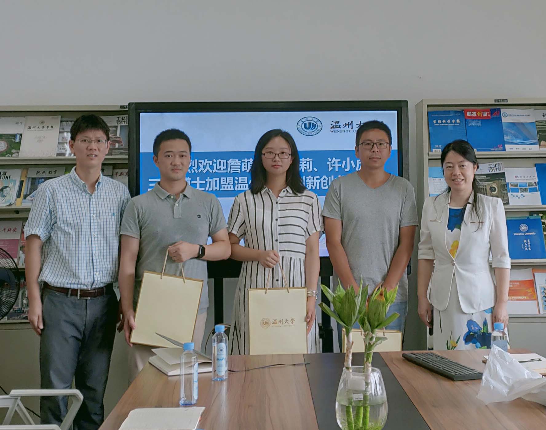 会议首先举行了一个简单的新博士入职仪式,欢迎来自英国南安普顿大学的詹萌、徐曼莉博士和来自浙江大学的许小虎博士加盟学院。