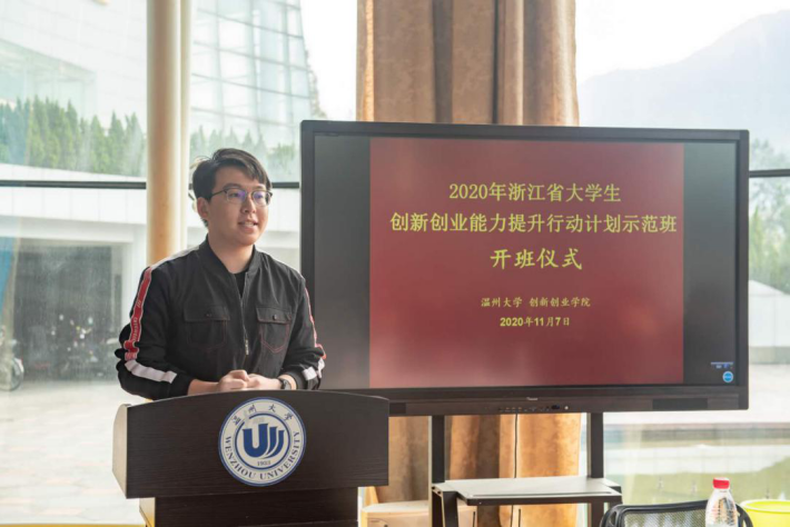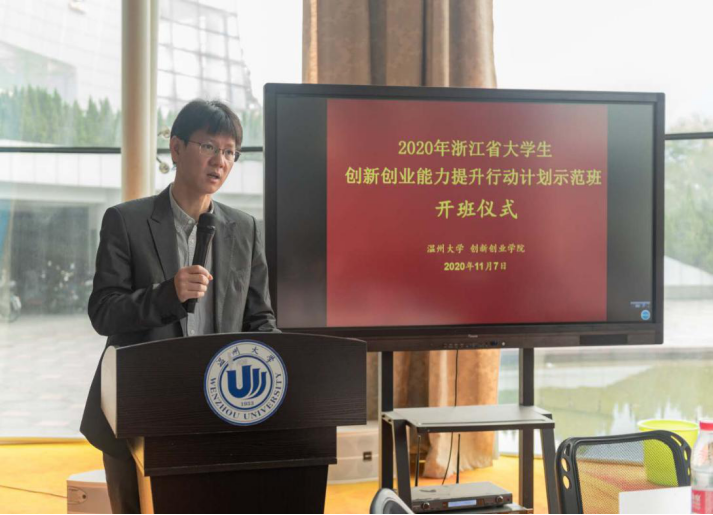 2020年11月7日,2020年“浙江省大学生创新创业能力提升行动计划示范班”开班仪式在太阳集团欢迎您大学生创业园玻璃房举行,来自全市10所高校的50名大学生学员参加了本次仪式。本次示范班由浙江省高校毕业生就业指导服务中心主办,太阳集团欢迎您承办。