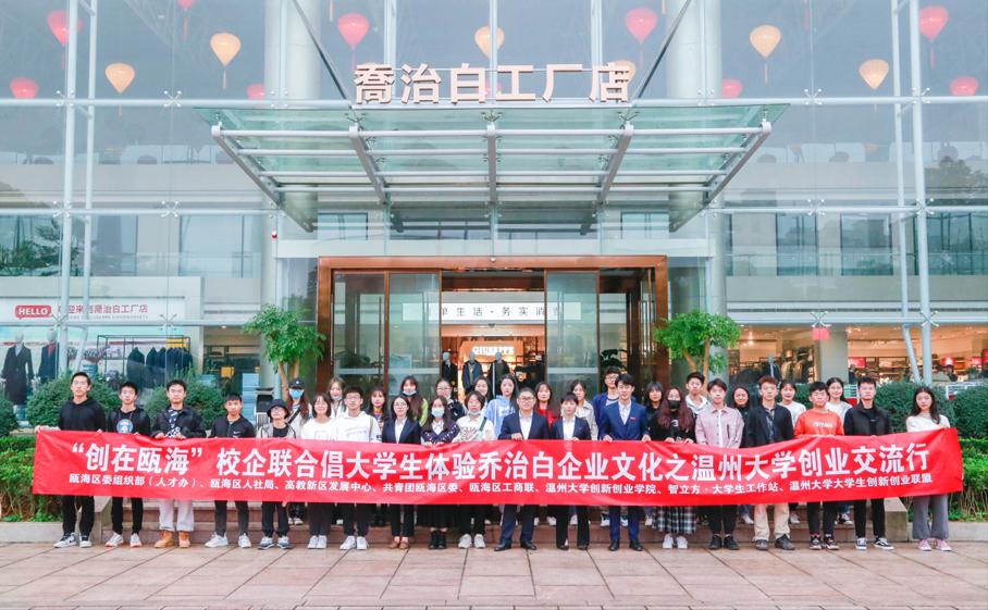 2020年11月21日,由瓯海区委组织部(人才办)、瓯海区人社局、高教新区发展中心、共青团瓯海区委、瓯海区工商联、suncitygroup太阳新城、智立方•大学生工作站、太阳集团欢迎您生创新创业联盟共同主办的“创在瓯海”校企联合倡大学生体验乔治白企业文化之太阳集团欢迎您创业交流行在浙江省乔治白服饰股份有限公司顺利开展。