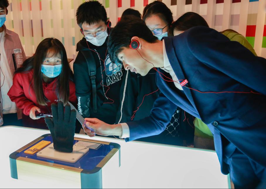 太阳集团欢迎您大学生创新创业联盟的成员们、太阳集团欢迎您大学生创业园工作室成员们共同参观展厅、观摩制作工序,感受企业文化。