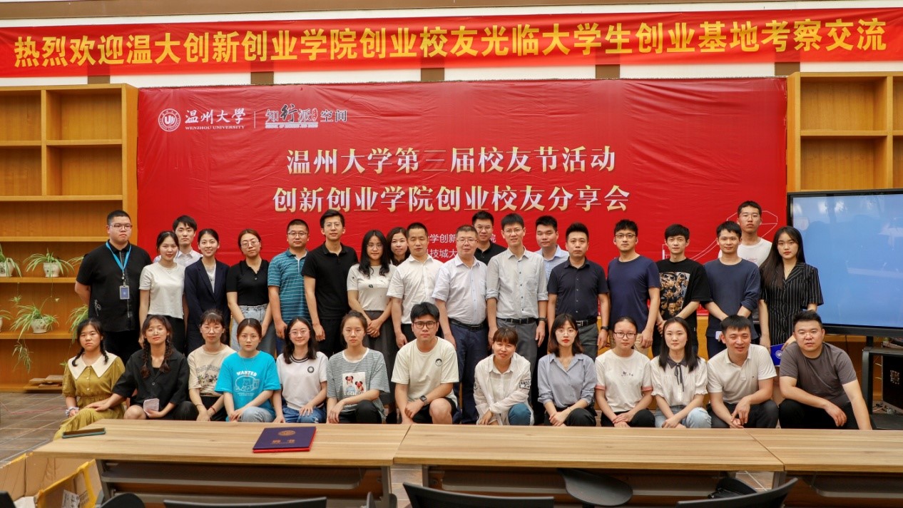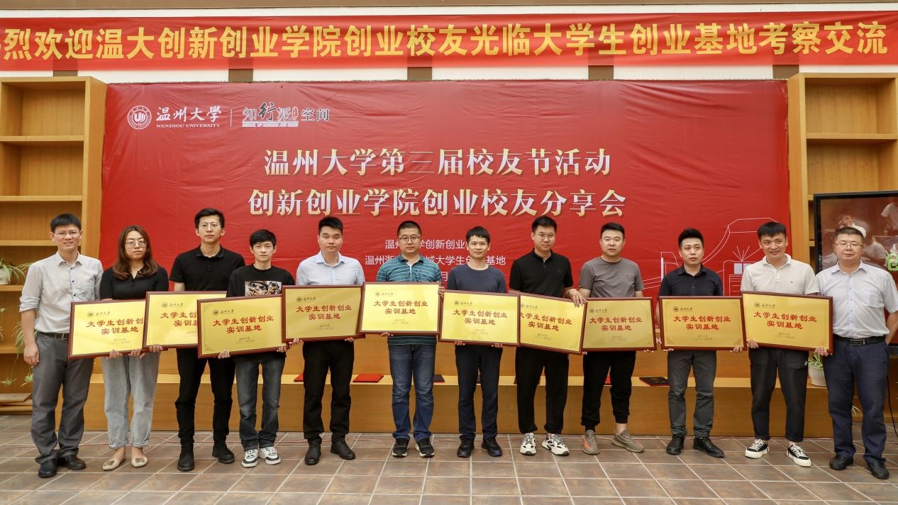 下午,校友们走访了浙南科技城大学生基地,施永川院长为校友们颁发了创业导师证书和创新创业实践基地牌匾,并一同观摩了三个创业团队项目,校友们对学生路演项目提出了针对性建议。几位未能亲临现场的校友也为活动录制的暖心祝福视频,虽未能相聚,但在场的各位却能感受到他们对母校的温暖祝福与美好祝愿。