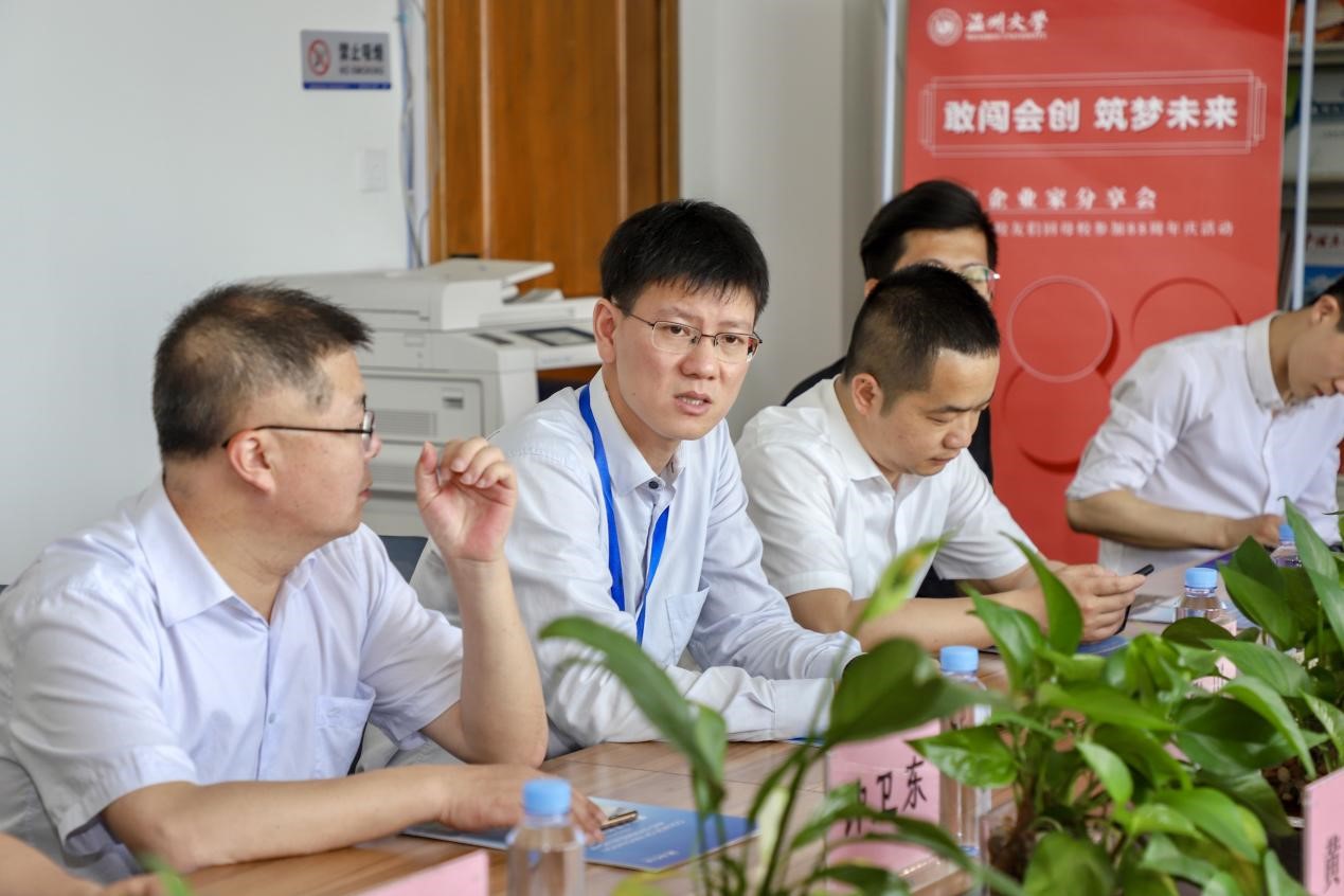 suncitygroup太阳新城施永川院长致辞。他深情回忆了校友们当年在温大校园开启创业之路的往事,高度评价了校友们对母校的深厚感情,希望校友们秉承“求学问是 敢为人先”的温大校训精神,在未来创造更多辉煌来回报社会、回报母校,同时也希望他们能多回学校看看,更多地帮扶有志于创新创业的学弟学妹。很多校友特意从杭州赶过来参加本次活动,他们感谢在校期间学校给予的创业支持,引导和帮助他们走上了创业道路,同时分享了各自近期的创业项目和状况。校友们纷纷表示,今后将继续全力支持母校发展,助力学院的创新创业工作。