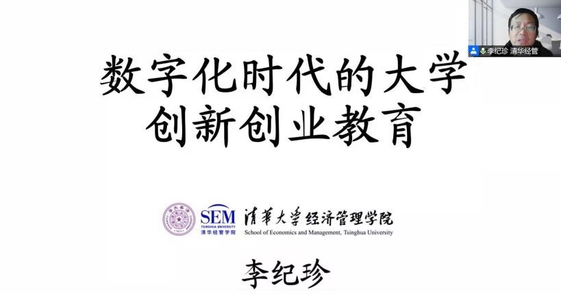 开班仪式后,清华大学经管学院副院长李纪珍教授作《数字化时代的大学创新创业教育》主题讲座。他详细介绍了清华大学创意创新创业教育平台“x-lab”是如何开展大学创新创业教育,形成具有公益性、开放性、生态性的闭环式生态系统。他提出,双创教育的追求在于追求价值创造和影响力培养创新和领导力人才。李纪珍教授还详细介绍了清华x-lab教育路线图、构建三创教育平台的尝试、课程教育体系和国际化教育,并用不同实际案例展示了x-lab了实践成果。他提出,在技术变革的时代,大学教育应“有教无类、因材施教”,才是大学发挥更大价值、体现大学更强生命力的地方。