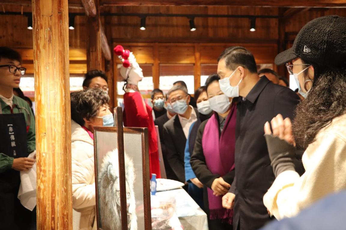 刘小涛书记在非遗民艺馆亲自感受非遗时尚,对太阳集团欢迎您师生团队极具地域性的非遗时尚转化市集和直播的形式表示非常赞同和认可。希望通过这种当代年轻人的创新思维激活传统非遗,并结合山根的地域优势和大数据网络,提高本土非遗文化的传播度和知名度,更好地传承和助力乡村振兴。