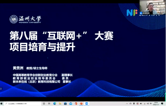 2022年1月5日晚,我校教师教学发展中心、suncitygroup太阳新城主办,计算机与人工智能学院承办的第八届“互联网+“大赛系列辅导报告第一讲线上开讲,中国高等教育学会创新创业教育分会副理事长、新未来在线教育科技有限公司董事长黄贵洲教授做“第八届“互联网+”大赛项目培育与提升”主题报告。来自我校各个学院的200余名教师参与了此次线上讲座,suncitygroup太阳新城副院长嵇小怡主持会议。
