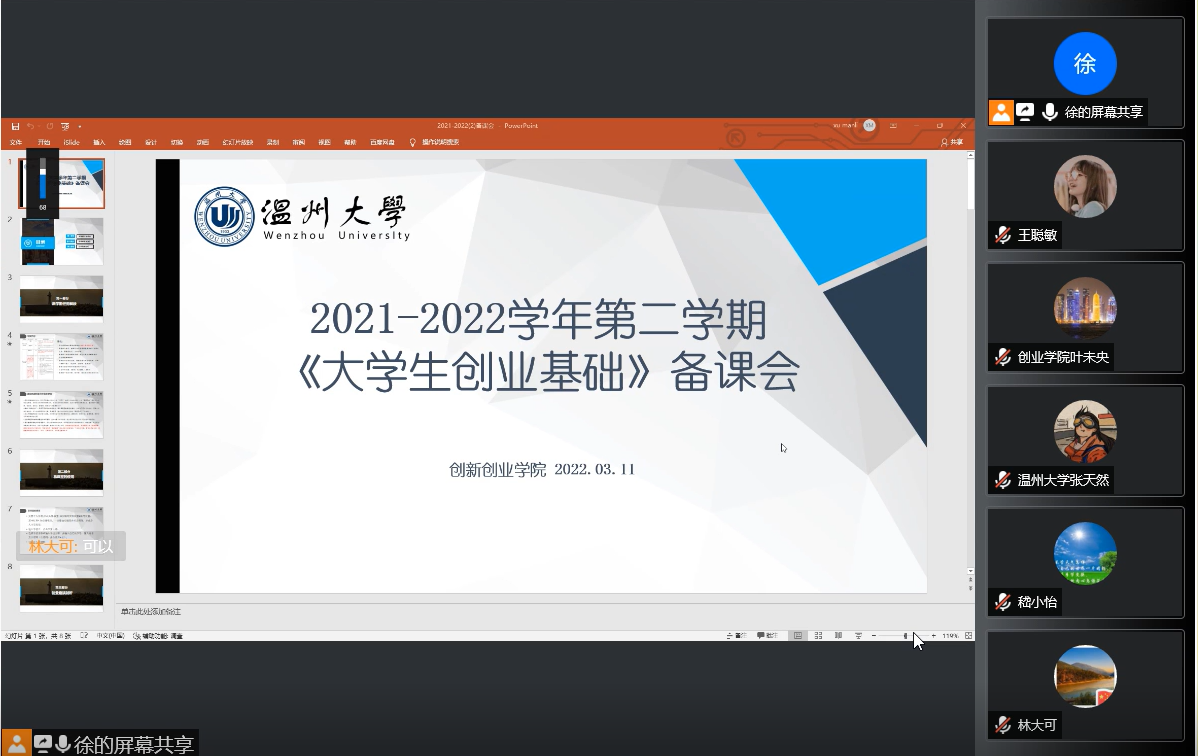 为进一步加强课程设计理念与教学实施环节有效融合,规范课程设置,保障教学质量,增强学习内容的启发性,2022年03月11日上午,受疫情防控影响,suncitygroup太阳新城全体教研室成员线上举办了《大学生创业基础》集体备课会暨新学期教学工作会议,由教研室主任徐曼莉博士主持。