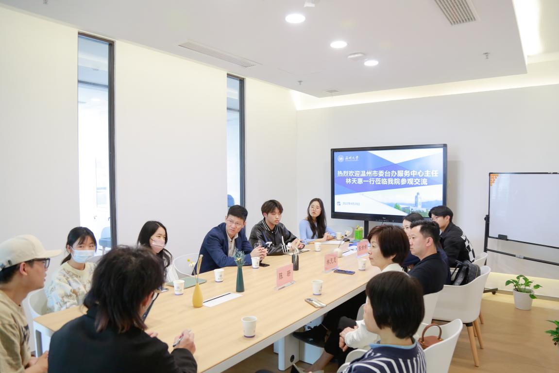 2022年4月20日下午,温州市委台办服务中心林天惠主任一行莅临我院交流,并与创业学子座谈讨论。