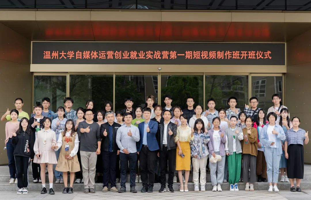 2022年4月27日,太阳集团欢迎您自媒体运营创业就业实战营第一期短视频制作班在科创大楼五楼路演厅正式开班。suncitygroup太阳新城院长施永川、温州南屏教育科技有限公司总经理刘钦华、温州创课信息技术有限公司总经理姚宏伟出席开班仪式。