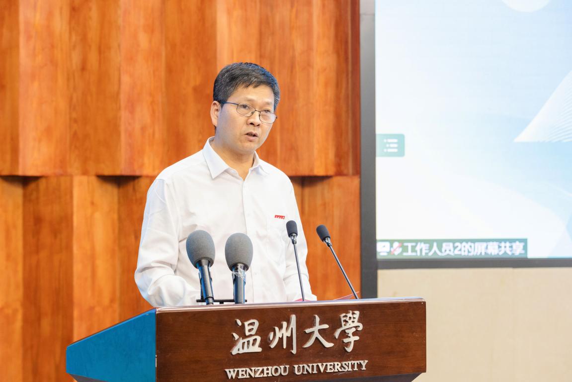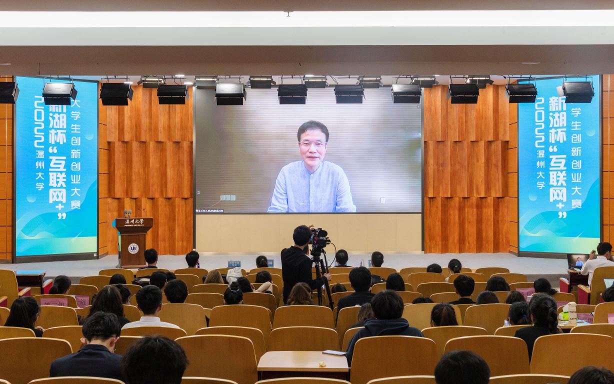 校党委副书记庄兴忠为大赛致辞。他感谢了新湖集团一直以来对学校和“互联网+”大赛的大力支持,肯定了本次赛事相关学院和师生团队的付出和努力。他指出,学校高度重视“互联网+”大赛,近年来大赛成绩、参赛项目质量和参赛报名人数等方面取得了明显提升。他要求,各学院要在思想上往“高处”解放,深刻理解大赛在人才培养范式变革方面的引领作用,完善大赛组织工作机制,建立推进机制和加大保障力度;要在思路上向“深处”打开,把学院学科建设和人才培养成果转化学生创业成果,深入挖掘和培育一批学生优质项目;要在思维上向“实处”定位,引导学生通过大赛掌握前沿知识,拓展创业视野和接受思想洗礼,参与到建设和服务温州中去。