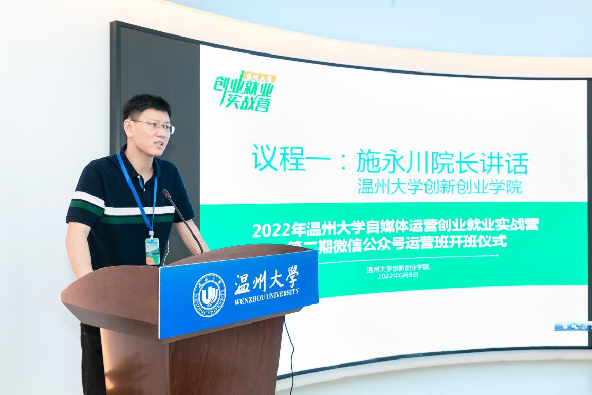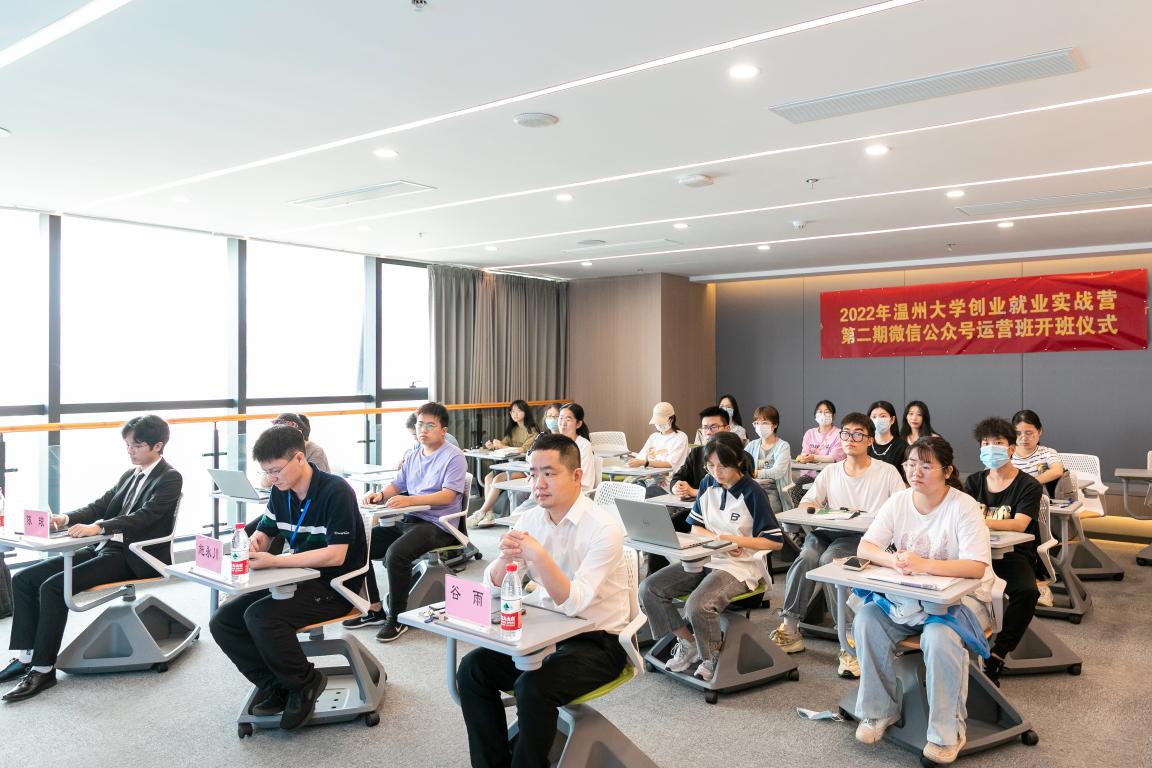 2022年6月8日下午,2022年太阳集团欢迎您自媒体运营创业就业实战营第二期微信公众号运营班在南校科创大楼五楼路演厅正式开班。suncitygroup太阳新城院长施永川、温州捷点科技信息技术有限公司总经理谷雨、浙江托包科技股份有限公司校企负责人陈琅出席了开班仪式。