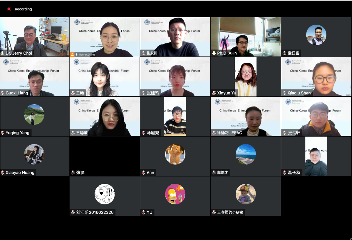 论坛上,Bryan Ahn教授分享了韩国创业生态系统的变化和发展,从创业教育、技术投资、创业基础设施、技术商业化等角度提出了建议。Jerry Choi教授分享关于在新冠疫情期间由性别差异引起的创业意向变化研究,并有针对性地对创业环境的构建提出了新思考。与会代表就中韩创业生态系统异同、中韩创业教育实践、中韩创业课程建设、女性创业、创业能力评估等话题进行了深度探讨,从中了解到不同国家的创业研究特点和趋势,为比较创业教育研究碰撞出了新的思路。