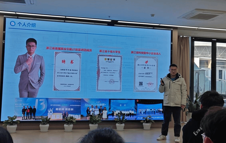 然后由浙江省首届“就业引航计划”宣讲团成员何宇迪为大家带来了他的创业成就与心得。何宇迪以自己的电商起家经验为例,分享了如何根据不同平台的不同用户群体,制定相应的个性化销售方案。他强调,创业过程中要时刻保持敏锐的市场洞察力,紧跟时代潮流,才能在激烈的市场竞争中脱颖而出。