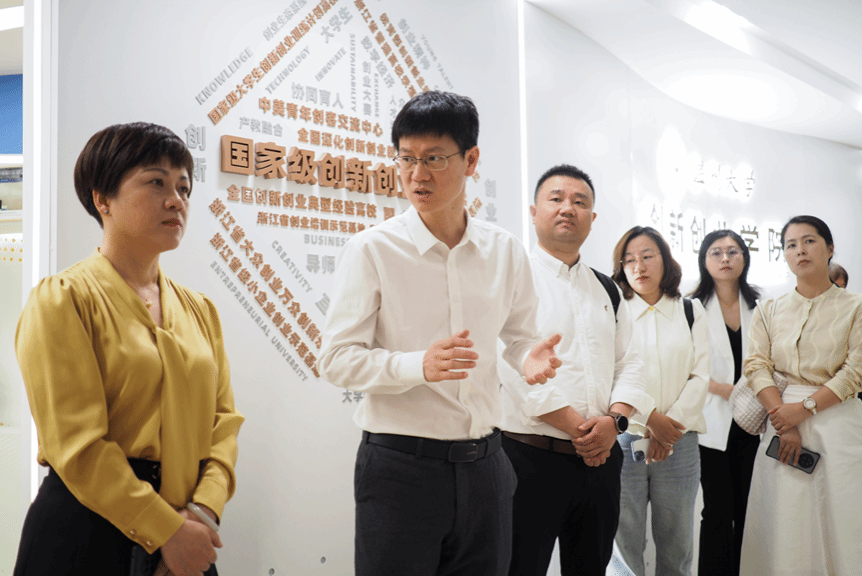 调研组一行实地参观了我校众创空间,听取了学校创新创业工作发展历程、众创空间建设、温州新生代培养等方面工作汇报,肯定了我校在创业示范基地建设、大学生创业实践等方面取得的成绩。