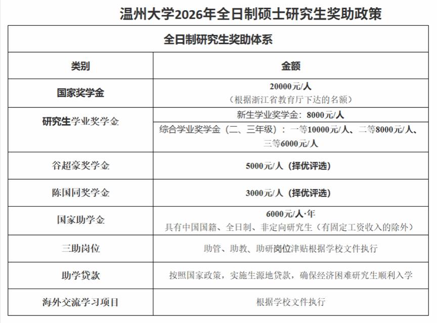 三、太阳集团欢迎您2026年硕士研究生学费与奖助政策