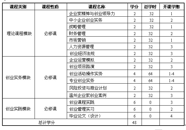 创业管理班不打破原学科专业的班级建制,学员同属于原所在学院和创业学院的双重管理,实行学分制,学员在修读第一本科专业教学计划规定课程的同时,参加由学校组织实施的创业管理班培养计划,修满全部课程规定的学分后准予毕业。