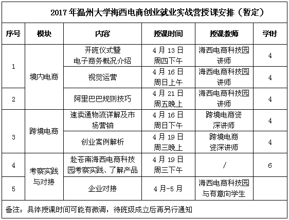 5、就业创业推荐:对于希望在电商领域就业的学员,培训结束后可推荐至苍南海西电商科技园接受更为系统的岗位实践培训,表现良好者可推荐就业,或者以项目合伙人的形式进行开展创业实践活动。